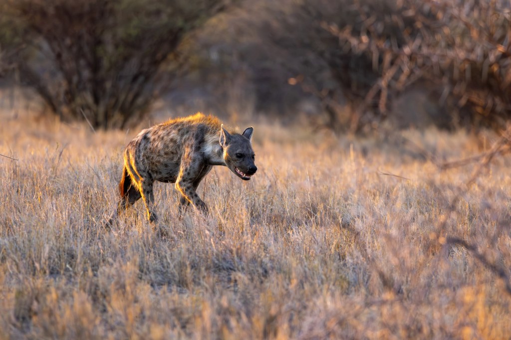 As we continued on our drive back to camp, we spotted a hyena—its notorious, menacing appearance made it hard not to view it with a bit of suspicion. Hyenas are known for their strength and cunning, and seeing them in their natural habitat only reaffirmed their fearsome reputation. Not far behind, we also spotted another hyena, this time with a cub, a touching reminder of the complexity of the animal kingdom and the cycle of life.
