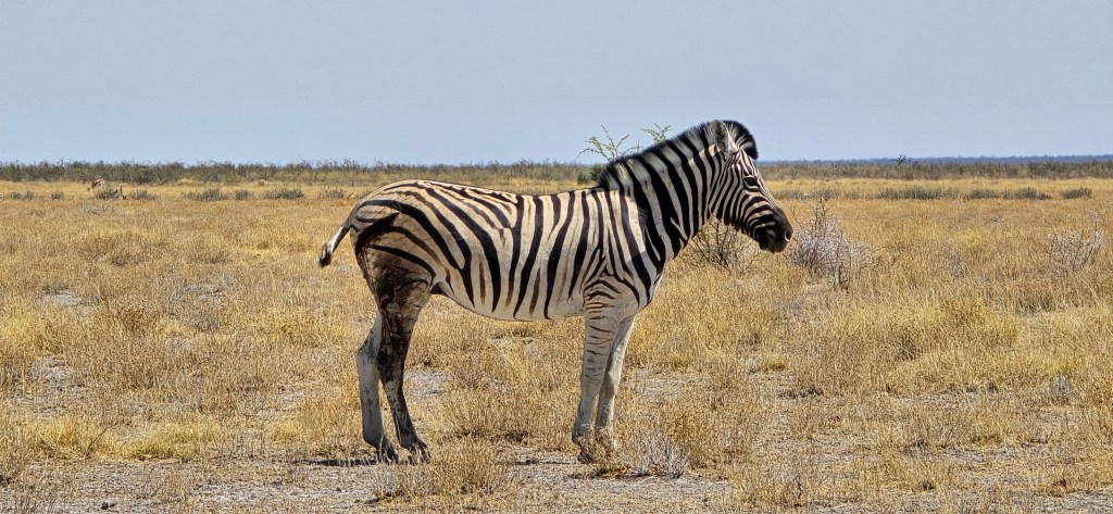 We soaked it all in. The open landscape of this part of Etosha gives you sweeping views and long sightlines, perfect for scanning the horizon. But by late morning, the heat began to settle in. The animals disappeared into the shadows, and we took the hint to start heading back.