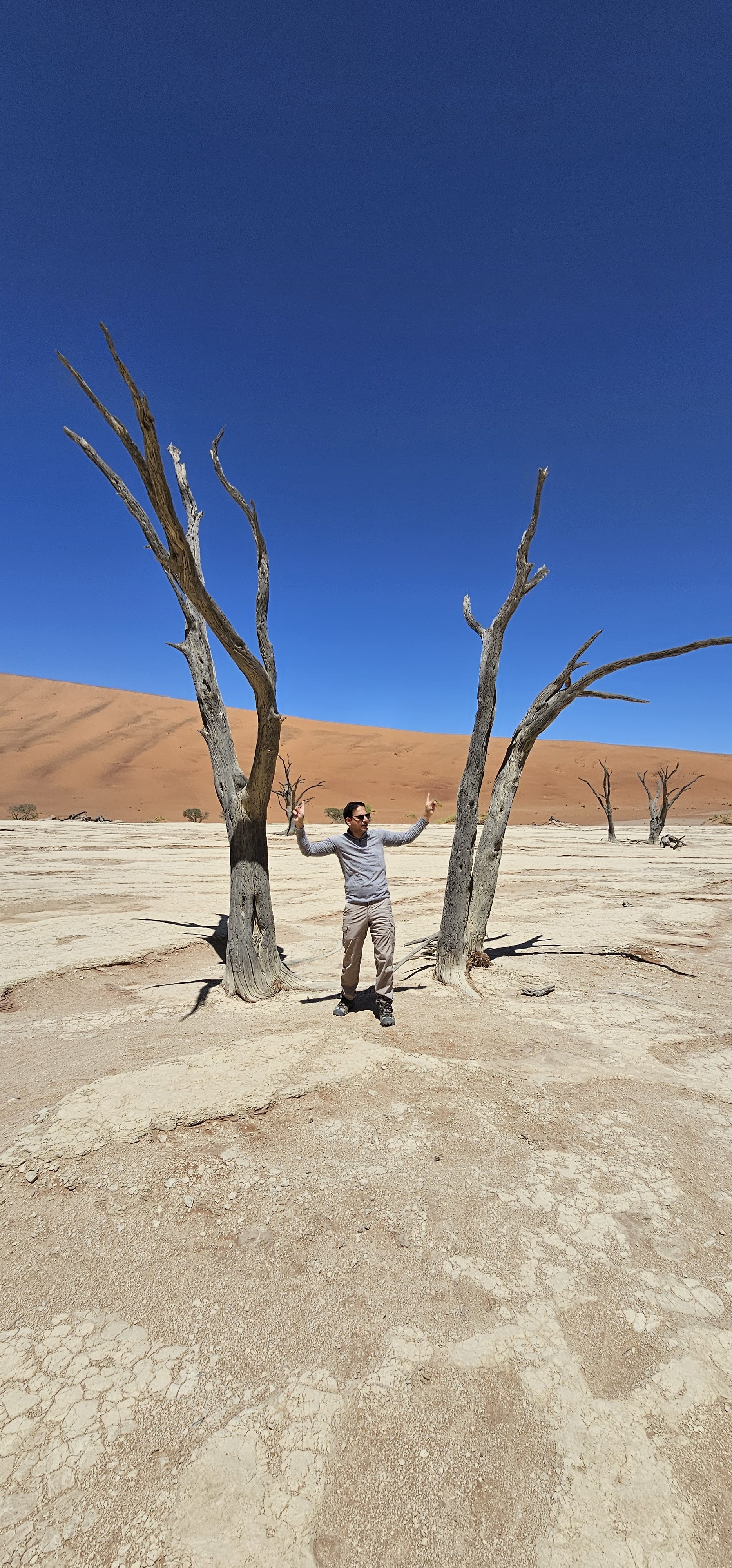 The contrast of colors here is mesmerizing—the deep red of the dunes, the bright white of the pan, and the blackened trees that still stand as silent reminders of what once was. This landscape feels like it’s from another world, a place untouched by time, and the feeling of standing there is almost like being on the edge of the Earth itself.