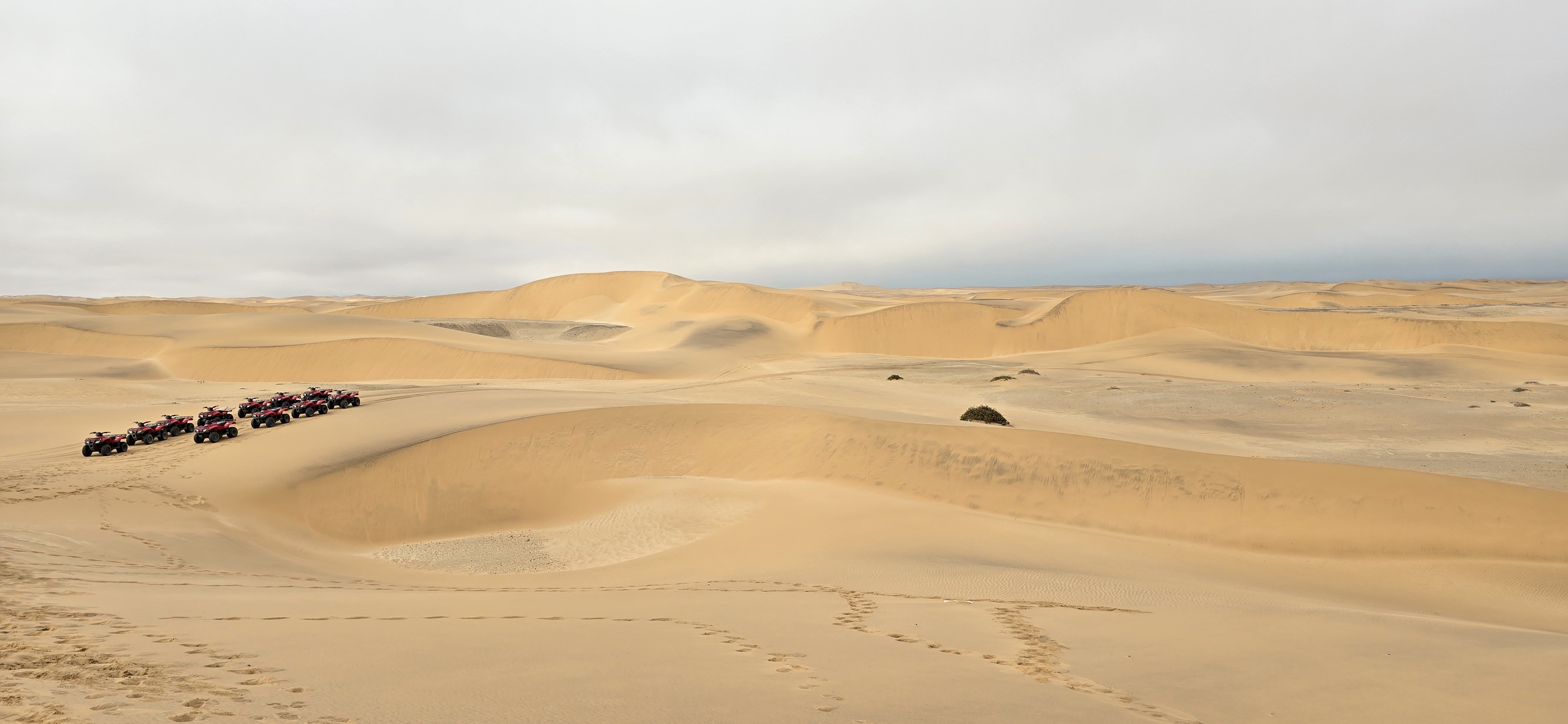 Strapped into our helmets, engines rumbling beneath us, we zipped through towering sand dunes just outside of Swakopmund. The cool Atlantic breeze rushing through my helmet as we zigzagged up and down the dunes was exhilarating. There’s a real art to driving on sand—accelerate too little and you sink (lets just say a few of us were guilty of this), too much and you risk flipping over the crest. Our guide, a seasoned desert navigator, led the way with ease, carving perfect paths through the golden waves of sand.