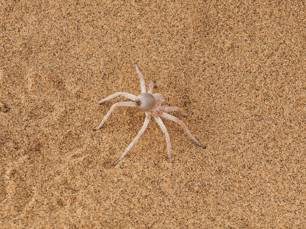- Dancing white lady spider – which buries itself beneath the sand, a master of camouflage.